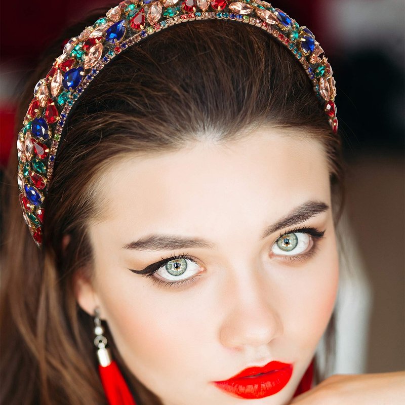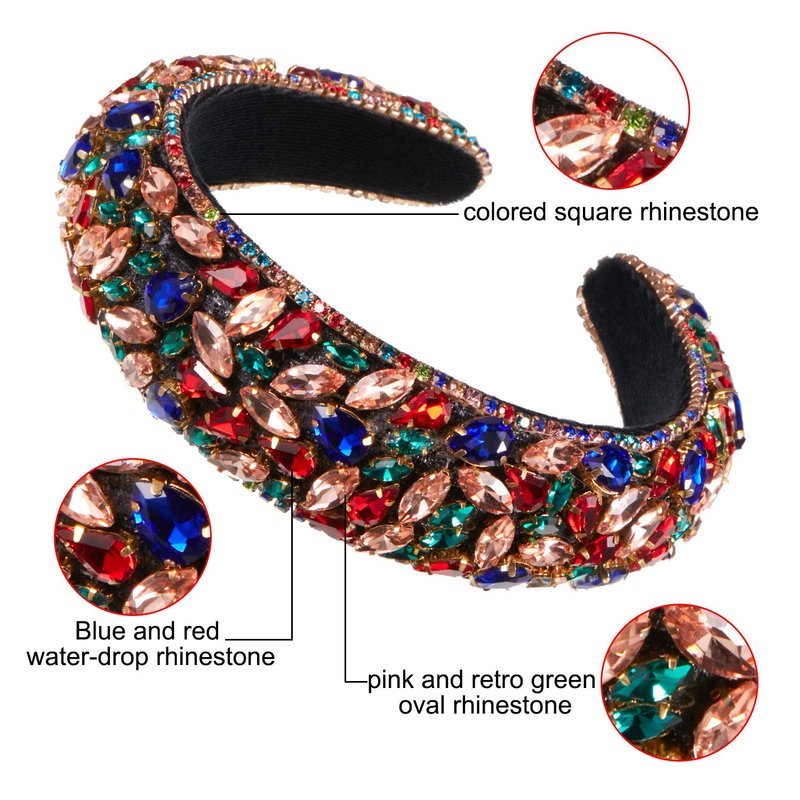 - Quality crystal rhinestone: this headband is manually sewn onto a plastic wide hair hoop using a velvet sponge pad, and then inlaid with colorful crystal rhinestones on a velvet pad; Exquisite handmade ensures the rhinestones and beads won’t fall off easily; No sewing thread on the back