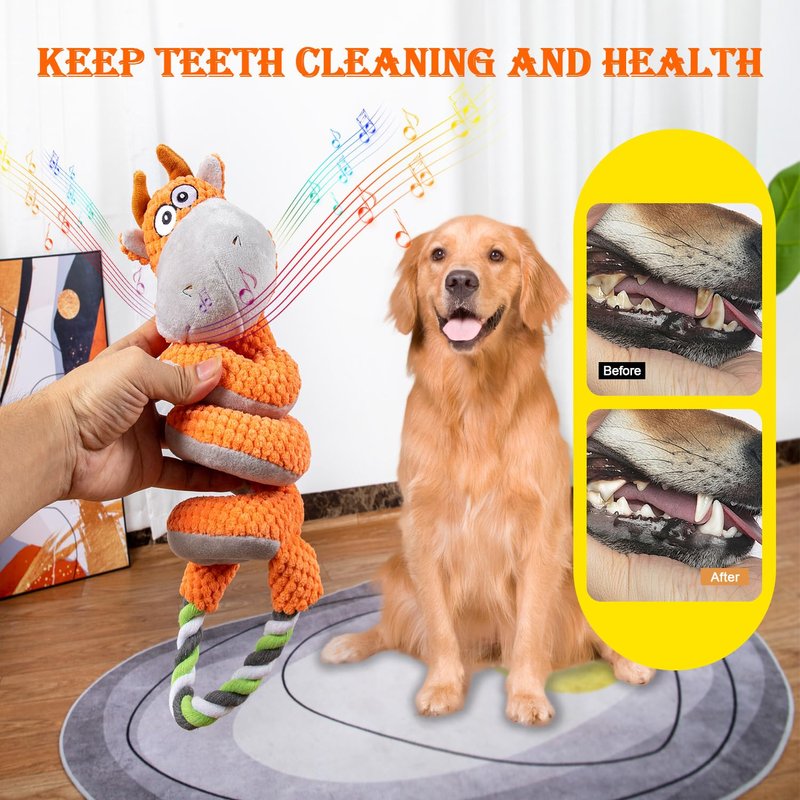 - 【Teeth Cleaning】Dogs can remove dirt from their teeth when chewing on this stuffed pet dog toys, helping to clean teeth, promote good oral health and prevent dental problems. You can also prevent your pet from chewing on household items by chewing on this toy during the teething process
