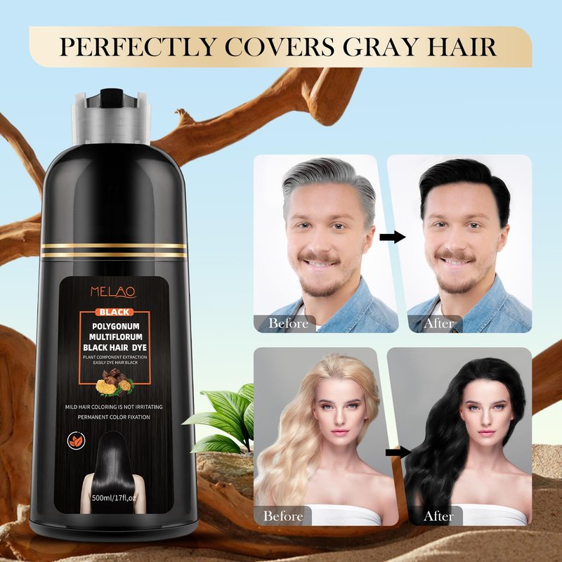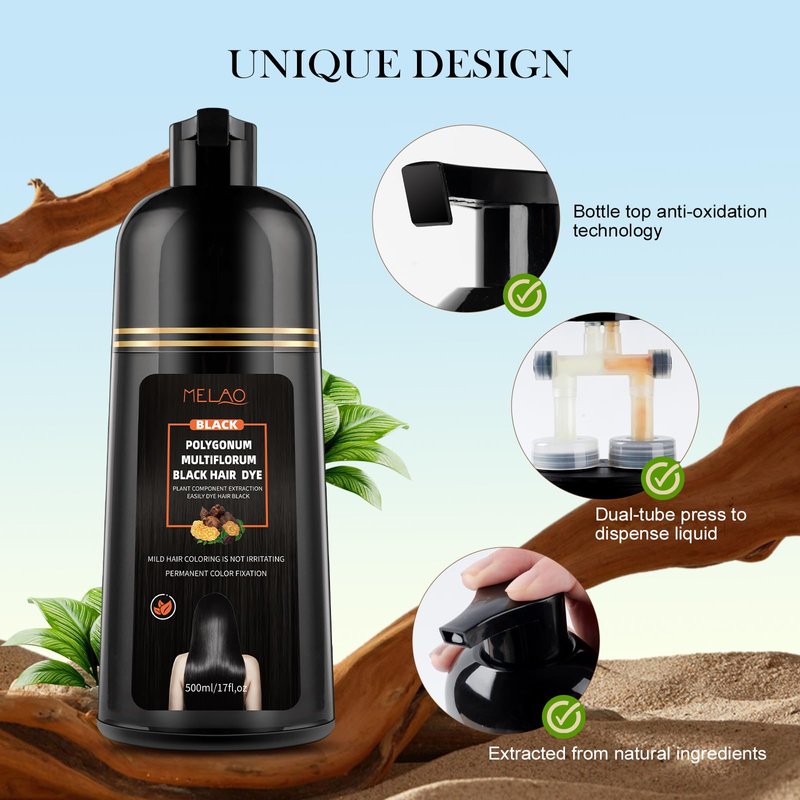 Vemofoper Black Hair Dye Shampoo for Gray Hair, Semi-Permanent Grey Coverage Shampoo,Hair Color Shampoo for Women Men,3 in 1 with Herbal Natural Ingredients (17 Fl Oz 500ml)