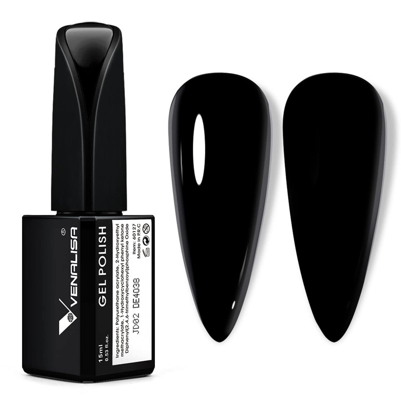 VENALISA 15ml Black Gel Nail Polish, Black Gel Polish Color Soak Off UV LED Nail Gel Polish Nail Art Starter Manicure Salon DIY at Home, 0.53 OZ