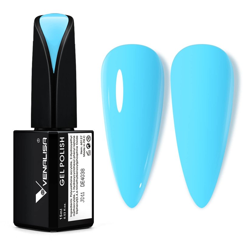 VENALISA 15ml Gel Nail Polish, Light Blue Color Soak Off UV LED Nail Gel Polish Nail Art Starter Manicure Salon DIY at Home, 0.53 OZ