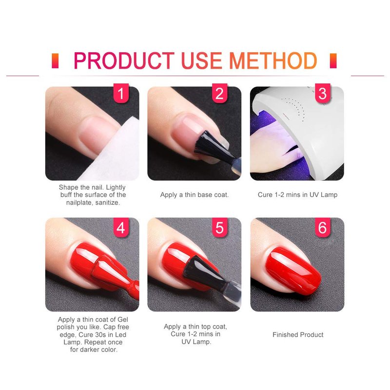3.If there is gel on the skin , please clean it before curing.We can not have the polish attached to skin or cuticle otherwise it will be easy to peel off.
