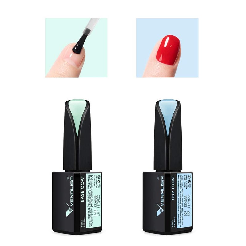 - ❤VENALISA 2Pcs 15ML Base & TEMPERED Top coat Set : High value no wipe top coat, Requires drying under UV or LED Lamp.