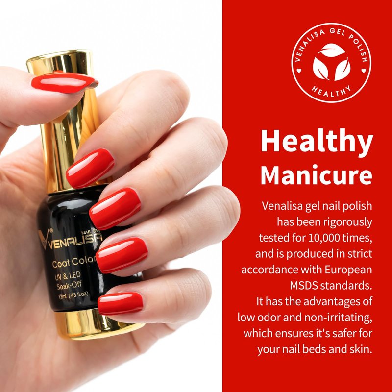 VENALISA Gel Nail Polish, 12ml Bright Red Color Soak Off UV LED Nail Gel Polish Nail Art Starter Manicure Salon DIY at Home, 0.43 OZ