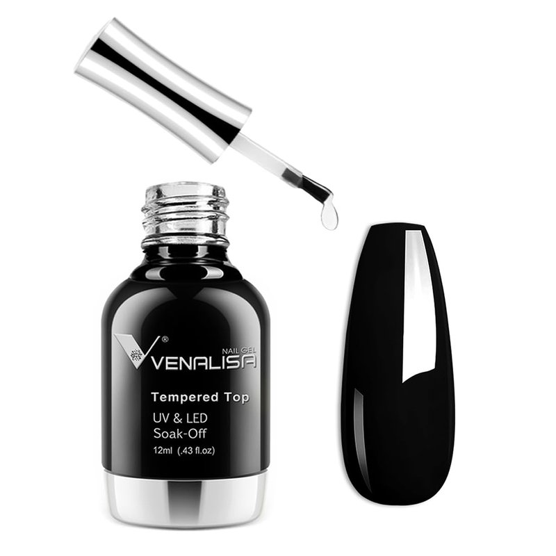 VENALISA Tempered Gel Top coat, No Wipe Long-Lasting High Gloss Shiny Top coat, Soak Off U V Lamp Clear Gel Nail Polish