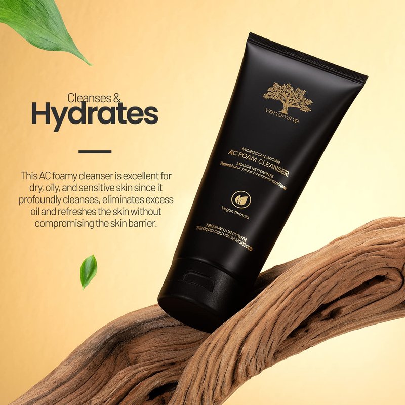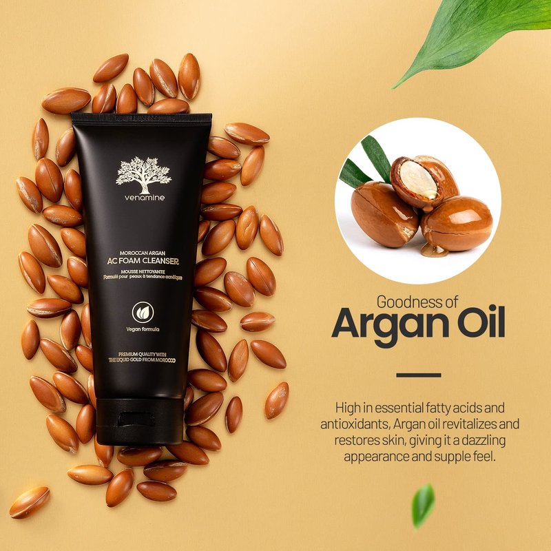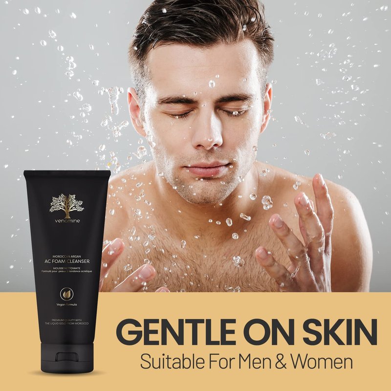 Do you want soft, supple, and glowing skin that is squeaky clean? Then we recommend that you try our foaming face wash Moroccan Argan acne face scrub foam cleanser with vegan formula Korean face wash . It is a exfoliating face wash moisturizing and revitalizing face cleanser for women and also is facewash cleaner men that will help to restore your dry, dirty skin. The foaming face wash with vegan formula contains only the most significant ingredients, such as Moroccan argan oil. High in essential fatty acids and antioxidants, Argan oil revitalizes and restores skin, giving it a dazzling appearance and supple feel. Venamine foaming facial cleanser is excellent for getting rid of excess oil, grime, and makeup is also acne treatment for sensitive skin . When selecting a face wash for women or face wash men's for normal to oily skin, please search for a mild formula facial wash that won't disrupt your skin's natural protective barrier and contains components that assist in maintaining its moisture balance.