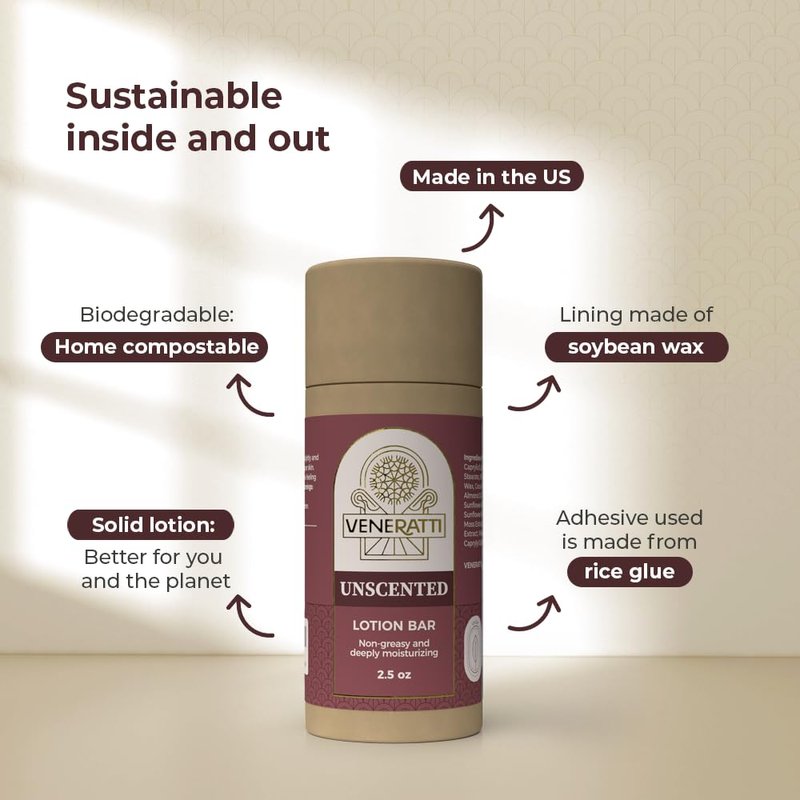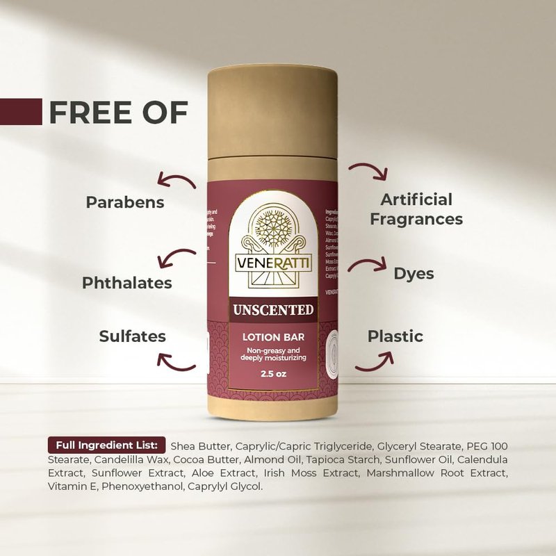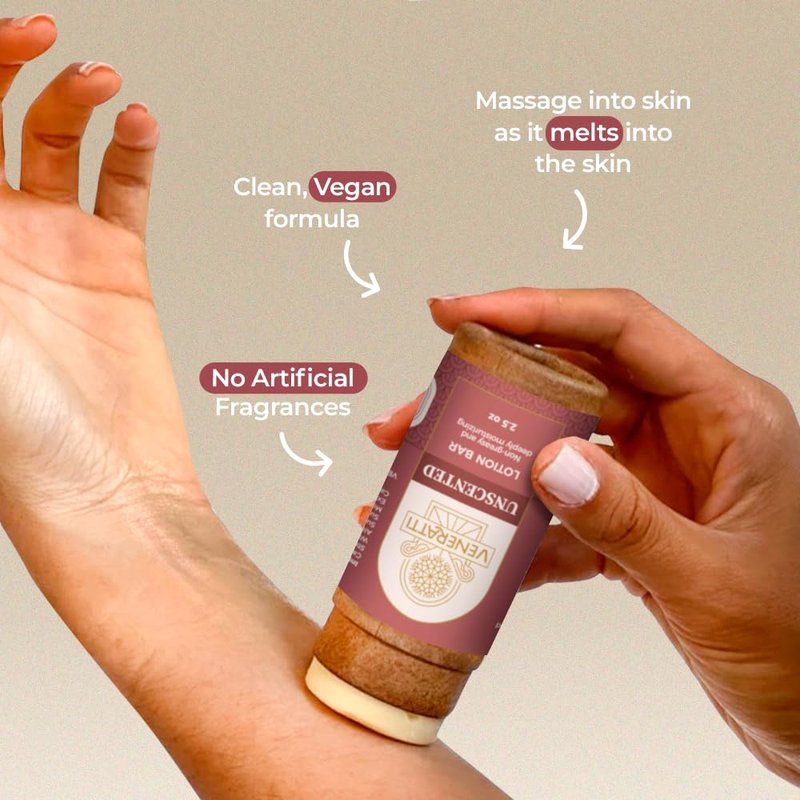 VENERATTI Lotion Bar Unscented - Vegan, Made in the US, Eco Friendly Products - Quick Absorption, Non-Sticky - Natural Ingredients Solid Body Lotion for Women Dry Skin - Travel Body Lotion