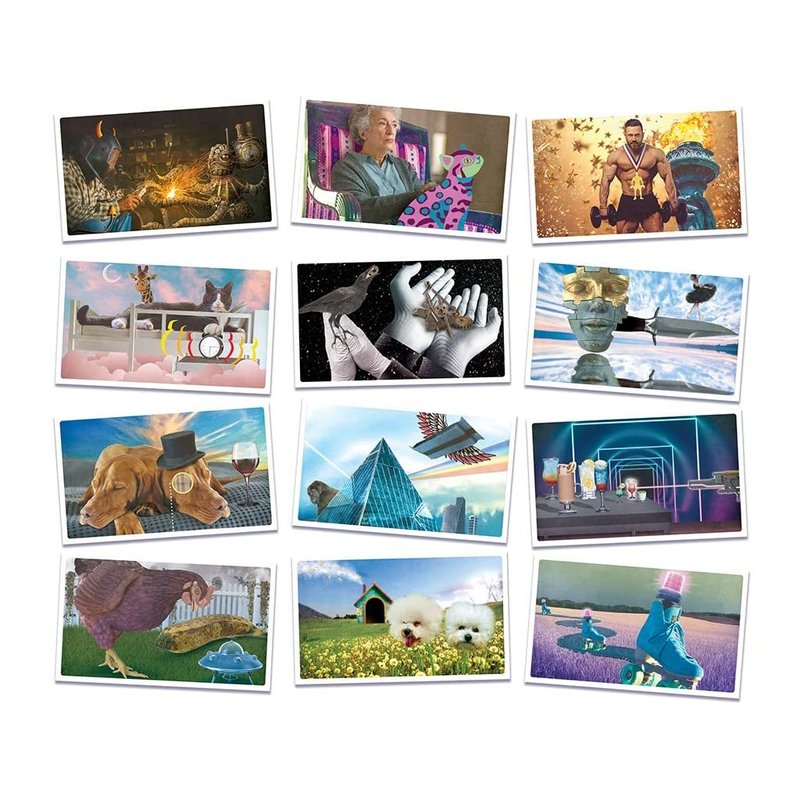 - Includes: 6 Colorful Circles (2 Magenta, 2 Cyan, 2 Yellow), 100 Doubled-sided Art Cards, 50 Double-sided Word Cards, 100 Number Cards, 1 Scoreboard, 2 Team Scoring Markers, 2 Number Card Holders, 1 Rulebook