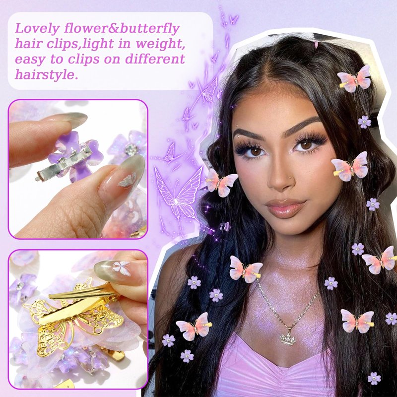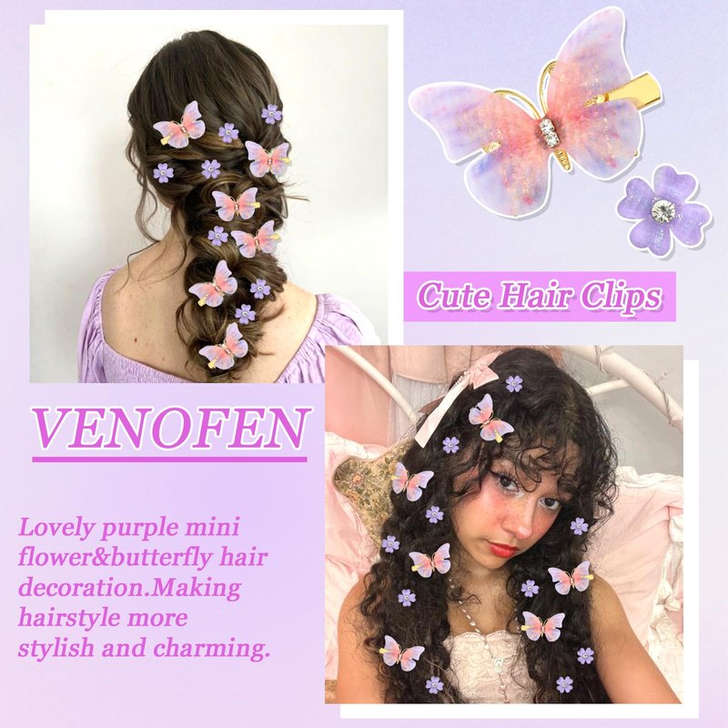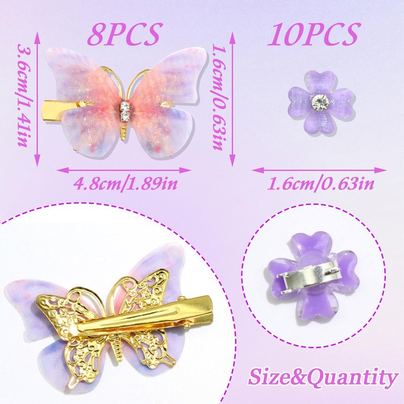 - Package Contains:You will receive 10pcs small flower hair clips and 8pcs butterfly clips.These cute purple hair accessories looking lovely and vivid,perfect for decorating hair,making hairstyle more eye-catching and charming.