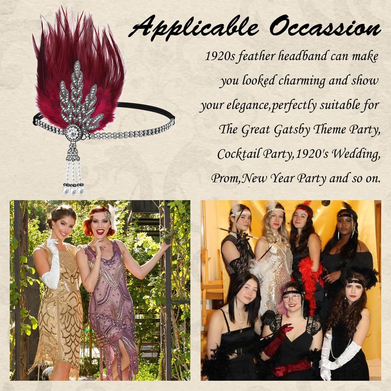 - Applicable Occassion:Roaring 20s feather headband is perfect for The Great Gatsby Theme Party,Cocktail Party,1920's Wedding,Prom,New Year Party and so on.