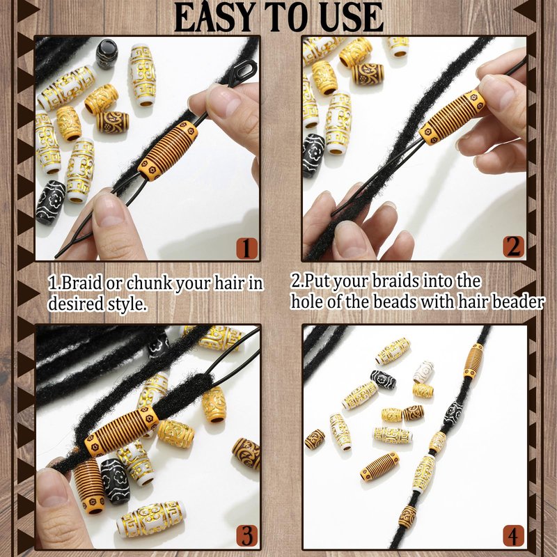 - How to use: Step 1. Select and weave your hair partially as you desire.Step 2.Use the hair beader to place the hair bead onto your hair and lock it with rubber band.Step 3. Easily change your appearance anytime and whenever you want.