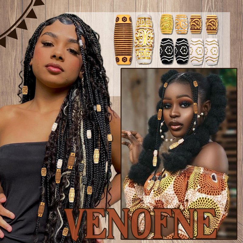 VENOFEN 38PCS Wood Hair Beads for Braids Loc Jewelry Beads for Hair Wooden Beads Dreadlock Accessories Multi Shape Loc Beads Hair Decoration for Women and Men, Style-3
