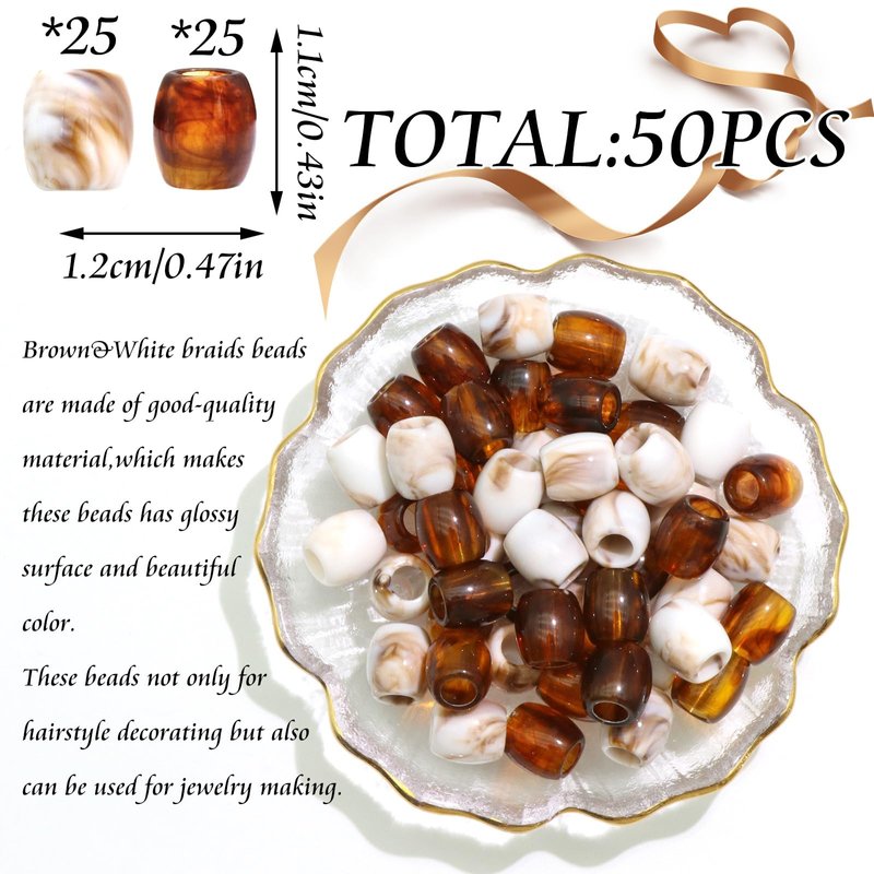 - Value Pack:One pack contains 50pcs braid beads in brown and white color.Smooth glossy surface makes these jumbo braids beads perfect for decorative hair.Enough quantity can satisfy your different decorative needs.