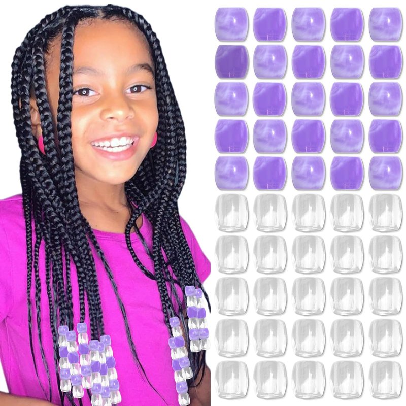 VENOFEN 50PCS Purple Hair Beads for Braids Loc Jewelry Clear Beads Dreadlock Accessories Cute Acrylic Pony Beads Hair Decoration for Girls and Women