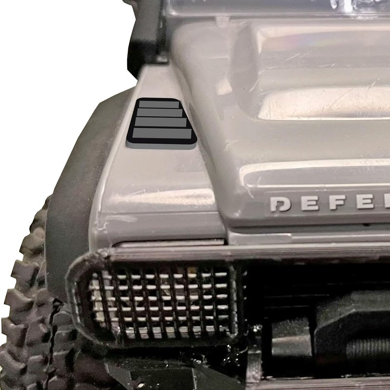 Upgrade your TRX4M 1/18 Scale RC Truck Crawler with these Vents for TRX4M Defender models. Made and designed specifically for TRX4M Defender trucks, these vents add a 3D element to your truck's appearance, making it look even more realistic and detailed. Double-sided tape makes installation a breeze - simply stick the vents right over the stickers on your truck. With these vents, your TRX4M 1/18 Scale RC Truck Crawler will look and perform better than ever before.