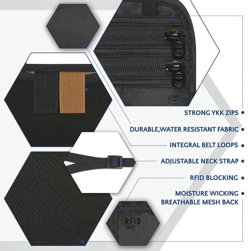 - FLEXIBLE STORAGE: With 3 smart compartments and an adjustable neck strap, the travel wallet provides flexible storage for maximum comfort. Wear it around your neck or on your belt for added convenience.