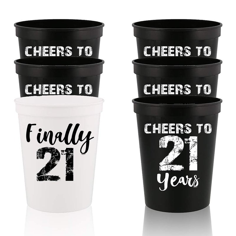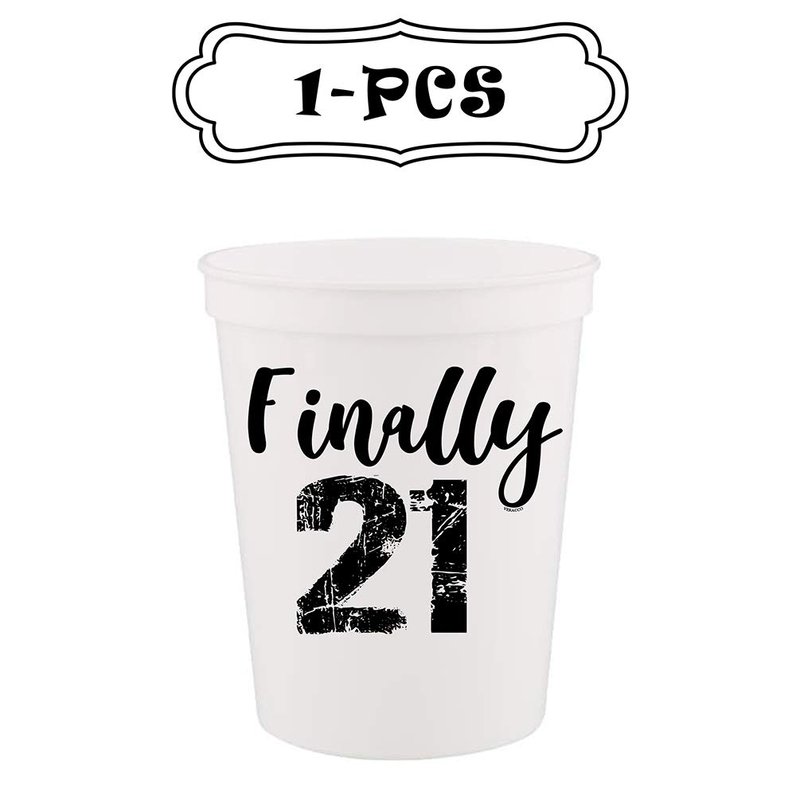 Veracco Finally 21 Cheers To 21 Years Twenty First Stadium Party Cup Funny 21s Birthday Gag Gifts For Him Herr Party Favors Decorations (White/Black, 12)