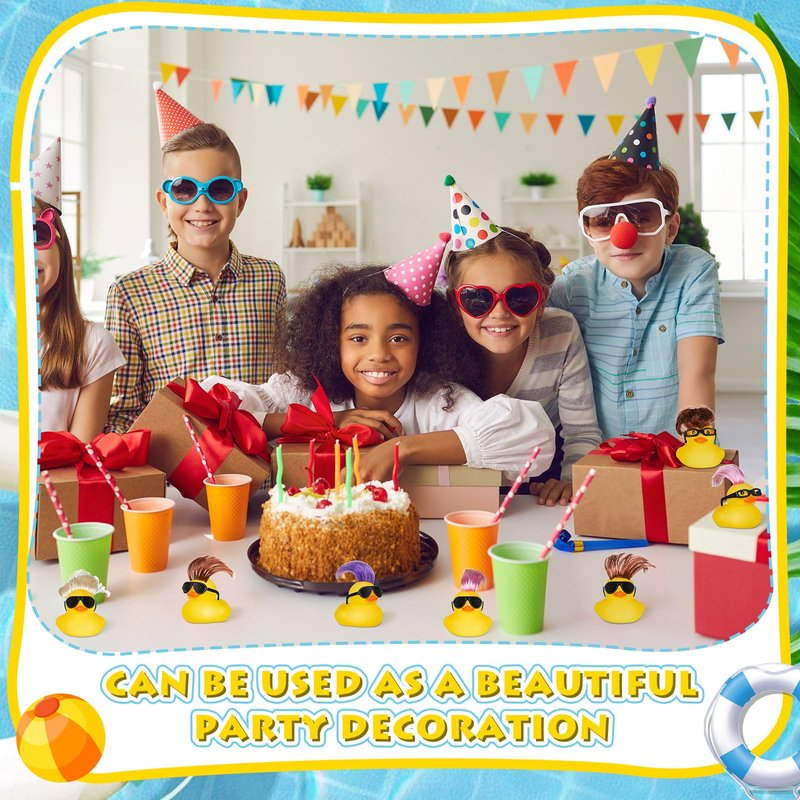 - Rubber Ducks Beyond Bathrooms: beyond the realm of bath or pool toys, these rubber duckies party supplies make for nice party decorations, adorable birthday gifts, baby shower items, classroom prizes, summer beach pool activities; They can be amusing carnival items, holiday party favors, and more