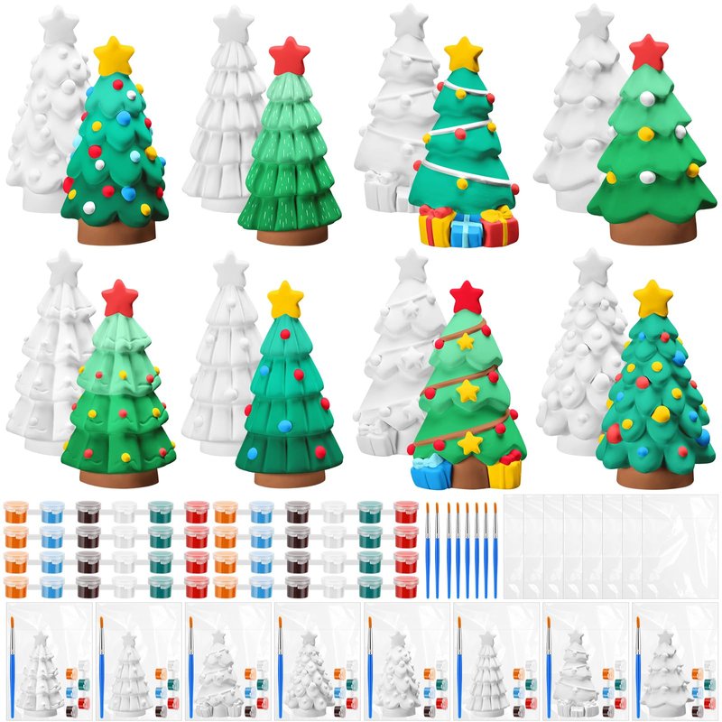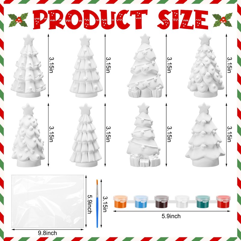 - Paint Your Own Christmas Tree: dive into the joy of creative activity with the DIY unpainted ceramics christmas tree figurines kit, including 8 unpainted christmas tree ceramic figurines, 8 palette have 6 colors, 8 line pen, 50 transparent OPP bags, and paint colors for a comprehensive activity for boys and girls alike to create their own christmas decorations