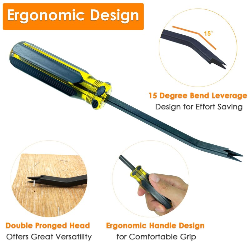 - Ergonomic Handle: The staple puller comes with a curved plastic handle, the tack remover has a multisided handle with non-slip design to keep from rolling, super light-weight, you can handle this upolstery tool with ease