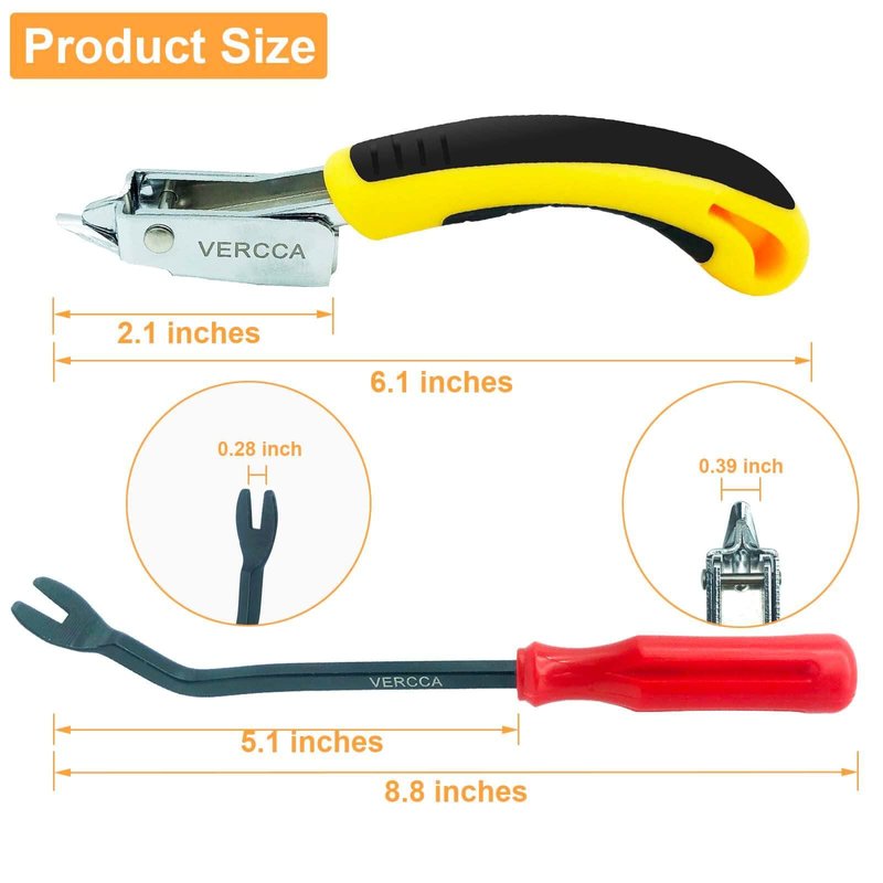 - Ergonomic Design: This set of staple remover tools comes with a leverage feature design quickly helps you to pull staples/nails out of furniture; a curved plastic handle with non-slip design protects your hands from stress and pain