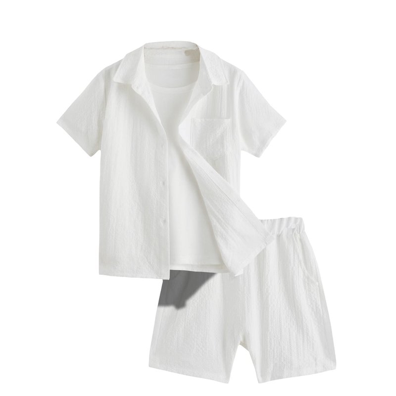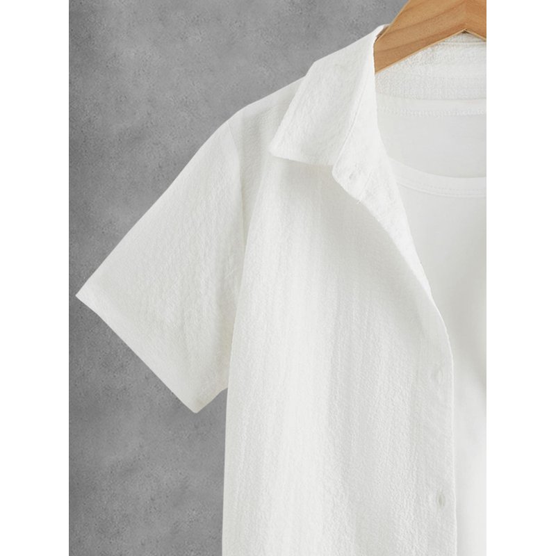Verdusa Boy's 2 Piece Outfit Button Down Shirt and Elastic Waist Short Sets White 160