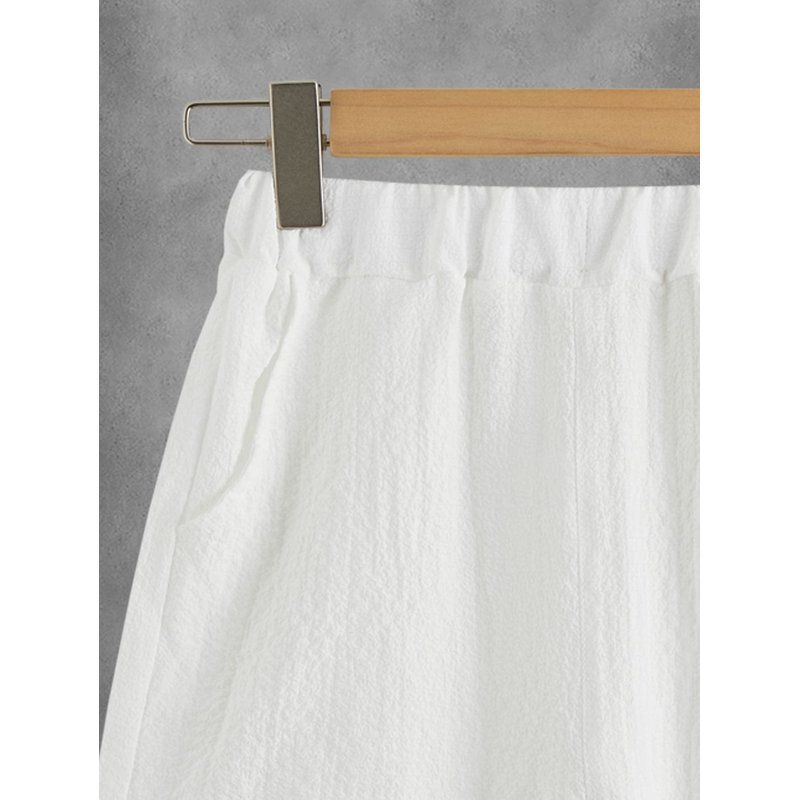 - Solid Short Sets: short sleeve, collar, button up shirts, side pockets, elastic waist shorts