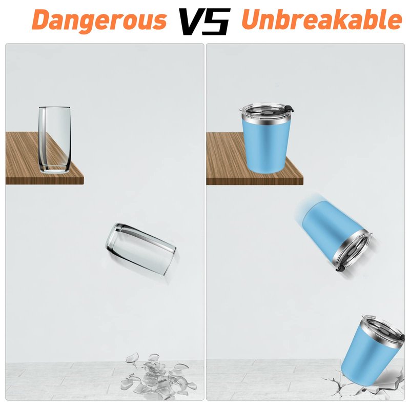 - 【Unbreakable 18/8 Stainless Steel】Compare with plastic and glass cups,each stainless steel kids tumbler is made of 18/8 stainless steel that is designed for food,which has no chemical odor and can withstand multiple falls.And these unbreakable personalized kids cups are powder-coated with vibrant colors to attract kids to focus on drinking water.The kids drinking cups won't rust after long time using.
