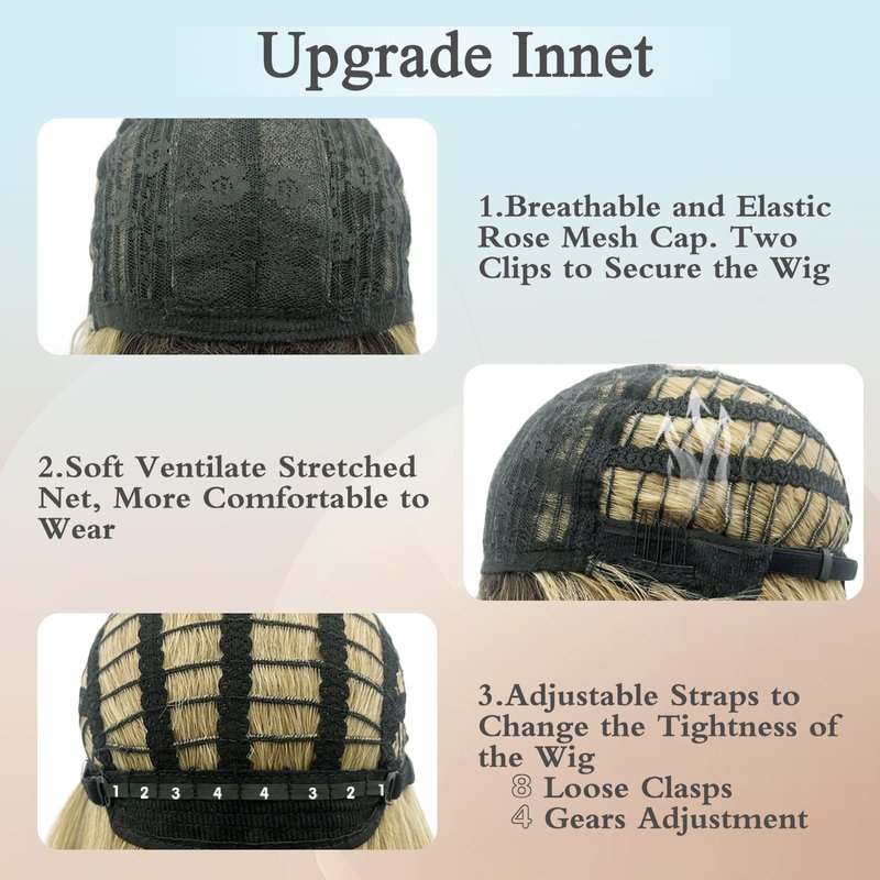 - ♕【About Bangs】The bangs on this blonde hair wig are of medium length, you can easily trim them to fit your personal preferences. You can also use the snap-on curling roller to shape the bangs into a fluffy and beautiful style. It’s suitable for all face shapes and brings a natural, stylish appearance that’s sure to boost your confidence and charm.