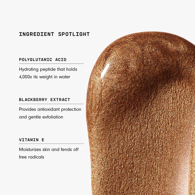 These blush liquid illuminating drops feel like a serum, act like a serum, and look like your most radiant skin, with a flush of natural color! This liquid blush for cheeks is formulated with superfine, light-reflecting pigments that enhance your skin's natural glow while evening out the appearance of uneven tone. Each virtually weightless drop gives the perfect face glow, while pumping hydration and plumping elasticity for noticeably smoother skin. This blush and liquid highlighter makeup hybrid contains polyglutamic peptides that hold 4,000x its weight in moisture- working alongside antioxidant-rich blackberry extract to strengthen the skin barrier. You can wear this dewy makeup solo as a natural-colored blush, over your foundation makeup for the perfect skin glow, or mixed into your moisturizer for a more hydrated blush look.