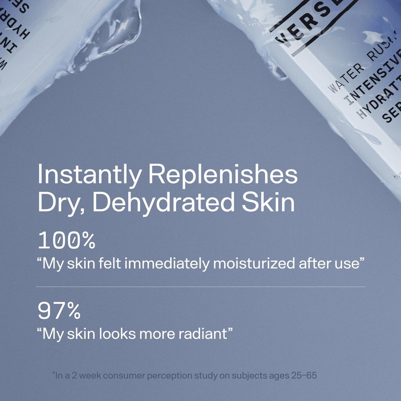 Versed Water Rush Intensive Hydrating Serum - Hyaluronic Acid Serum for Face with Vitamin B5 - Lightweight Face Serum for Dry Skin - Sensitive Skin-Approved & Clinically Tested