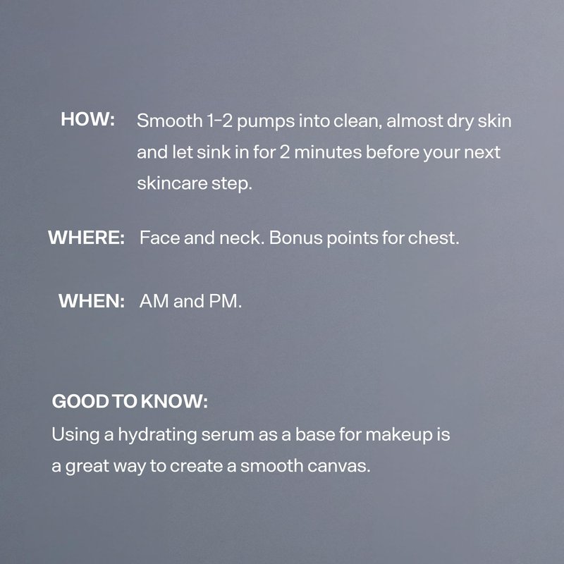 - How to Use: Smooth 1-2 pumps of the daily serum into clean, almost-dry skin. Let it sink in for two minute before your next skincare step. Can be used on the face and neck (bonus points for chest) in the AM and PM.