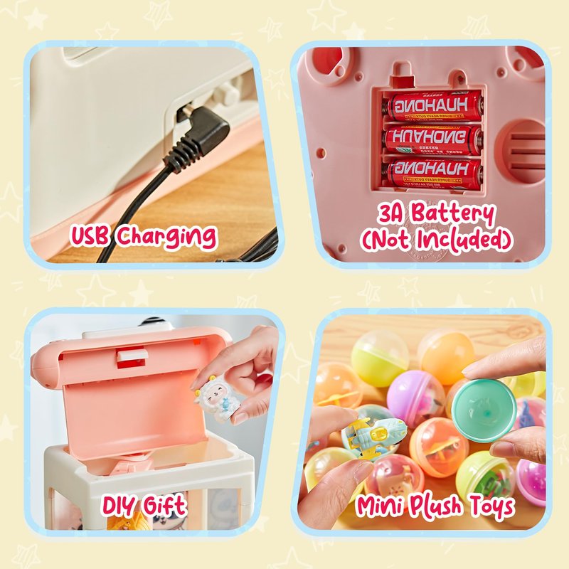 - Easy and Intuitive Operation: Simple to use for all ages—just move the joystick to position the claw and try to grab the prize before time runs out. With clear directions and responsive controls, it's fun and easy to try to win your favorite prizes.