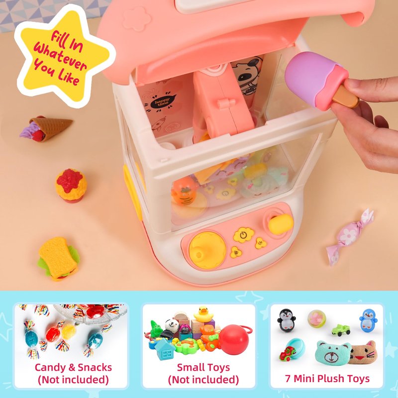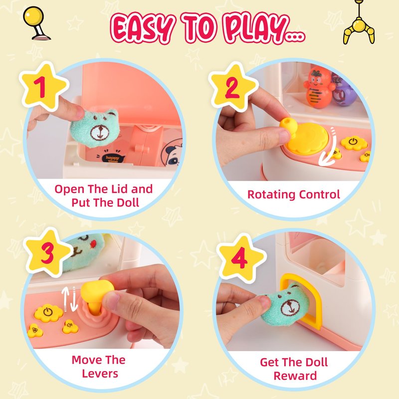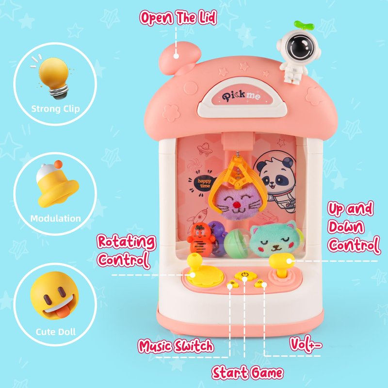 - Exciting Claw Machine Fun: Transform your home into an arcade with this mini claw machine! Your kids can become claw champions. Capturing dolls and toys without leaving the house. Start the fun with the press of a button and enjoy 60 seconds of thrilling gameplay.