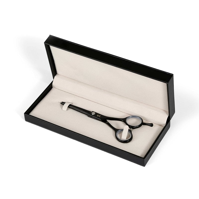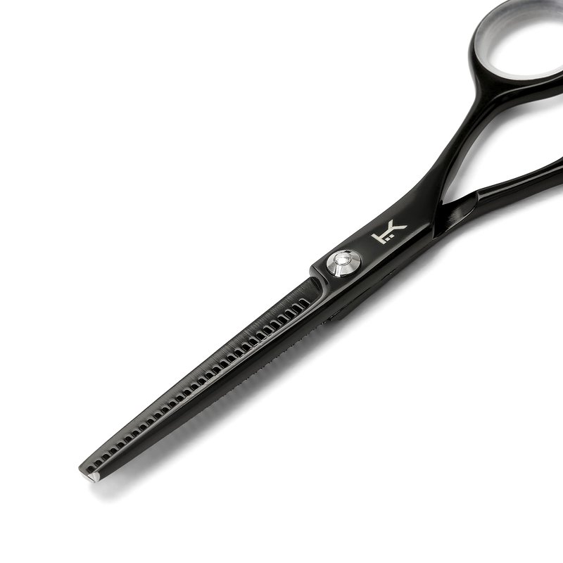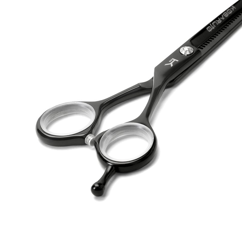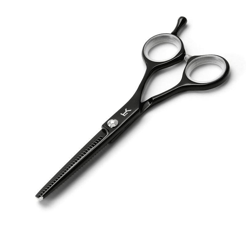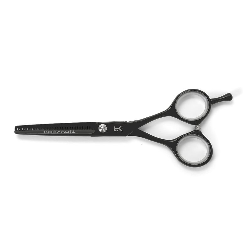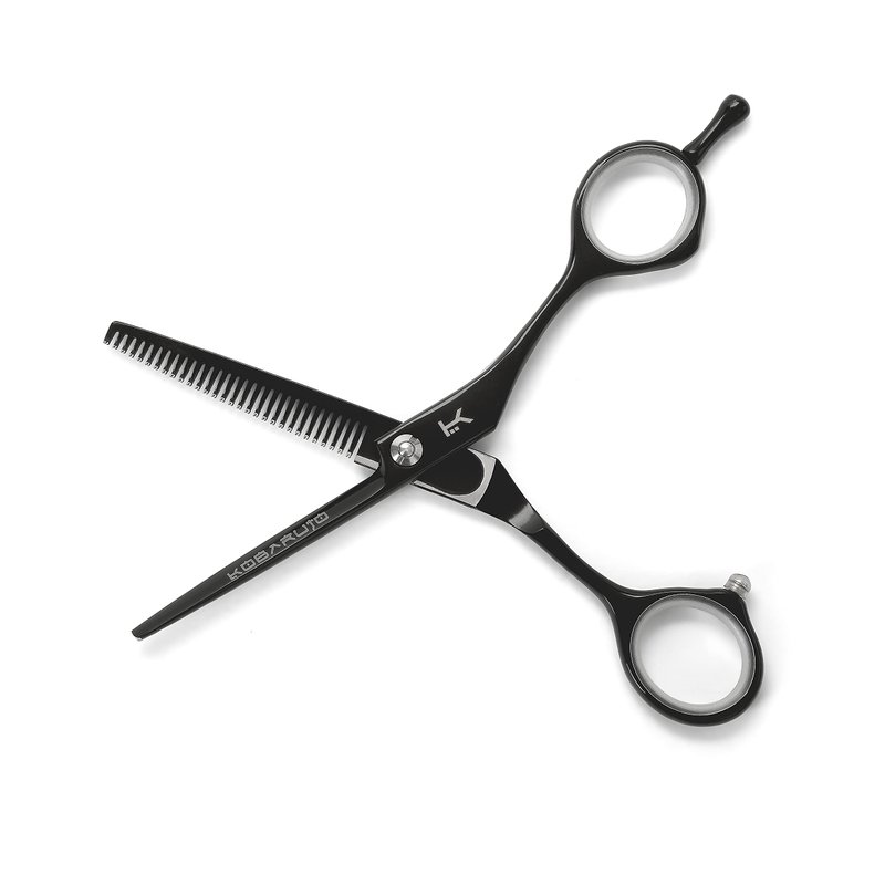 Kobaruto Black Cobalt Thinning 5.5 inch Hairdressing Scissors are an extremely high quality salon professional tool. They are highly durable shears as they are hand crafted from a supreme Japanese cobalt alloy making the scissors life unparalleled in the professional barber and hairdressing industry. 5 inch Cobalt scissors are light weight and have a smooth gliding action, the black finished handles and Matte Black Cobalt blades give these scissors an exclusively unique prestigious feel. Removable finger inserts are included to adjust for different finger sizes making the shears an even better fit. These thinning scissors have 30 teeth for a 35% cut ratio. They have an adjustable bolt that joins the blades as professional hairdressing scissors should and can tighten or loosen the blades according to the stylists or barbers preference. Our hair thinning shears feature ballistic blades which are ideal for professional use as they are designed to be used all day everyday and are guaranteed to assist every barber, stylist and hairdresser to take the art of hairdressing to a whole new level. Kobaruto Black Cobalt hair thinning scissors are currently available for worldwide delivery. The Kobaruto Black Hair Thinning Scissors 5.5 inch 30 Teeth was built with people like you in mind. Something to keep you happy. Every. Single. Day.