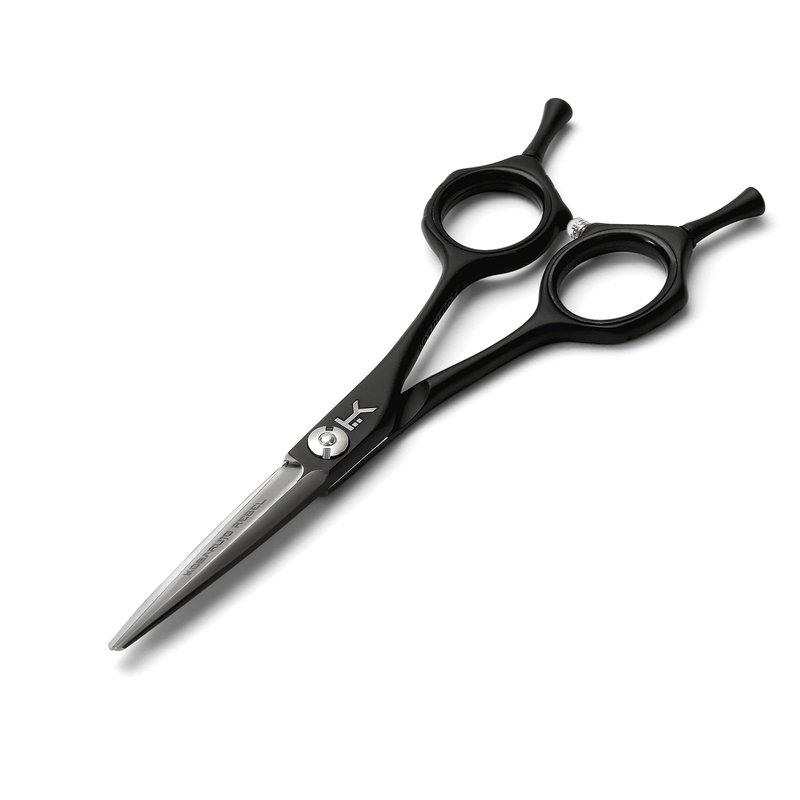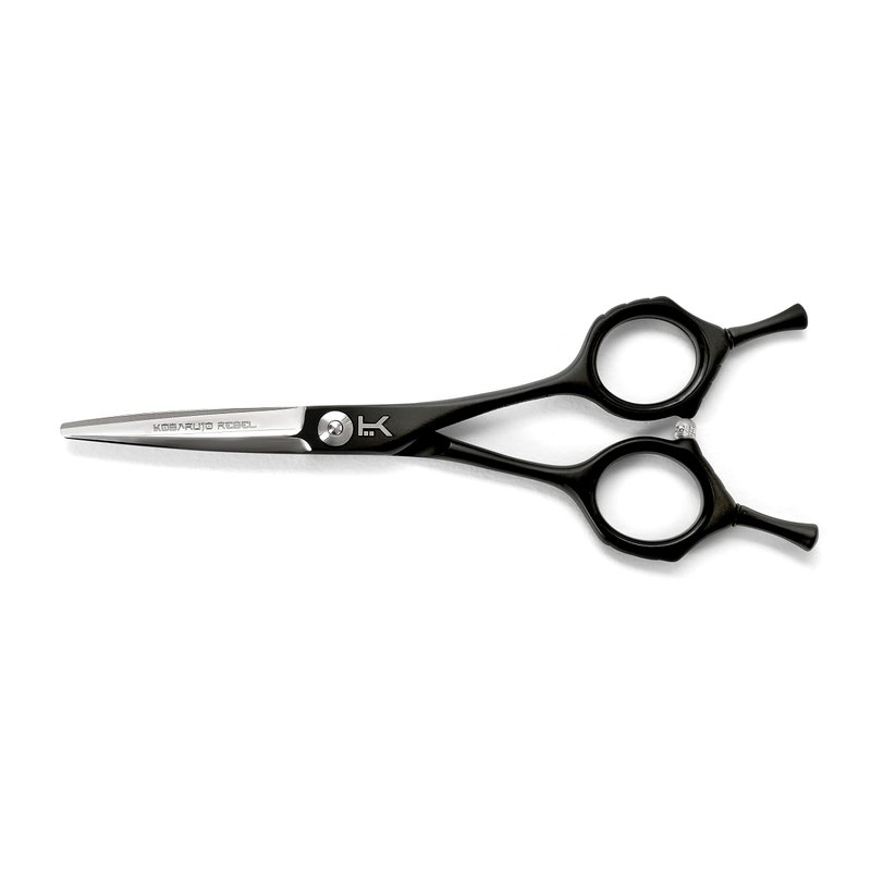 The Kobaruto Rebel 5.5 inch scissors are hand crafted from the finest Japanese cobalt alloy, powder coated with a stylish black and silver finish. Rebel scissors come with double finger rests and can be used by professional barbers and hairdressers. The front blade that has an angled sword edge and the back has a flatter edge for comb and hair allowing the stylist or barber extra accuracy and control. They also have removable finger inserts to adjust for size and comfort. They have an adjustable bolt that joins the blades, professional hairdressing scissors can be tightened or loosened according to the stylists or barbers preference. These hair shears feature ballistic blades which are ideal for professional use as they are designed to be used all day everyday and are guaranteed to assist every barber, stylist and hairdresser to take the art of hairdressing to a whole new level.