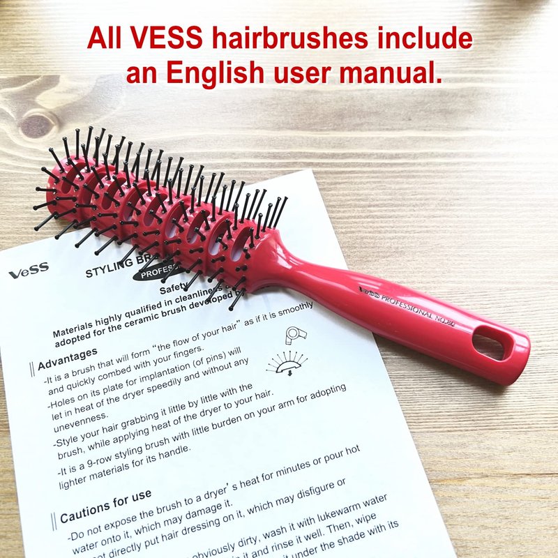 VESS Styling Ceramic Hair Brush 9-row Round Type, for Bow and Styling Made in Japan (No.80 Red)