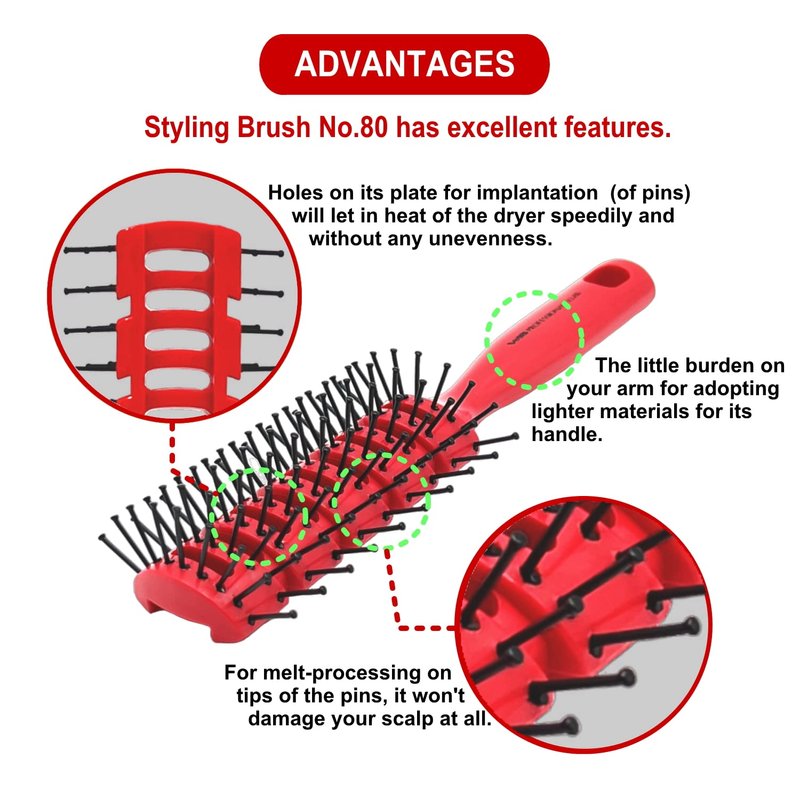 It is a 9-row styling brush with little burden on your arm for adopting lighter materials for its handle. You can choose from three different colors: blue, red, or gray. The choice is yours to pick whichever color you like the most. Buying all three colors is a great choice as well for your whole family to use.