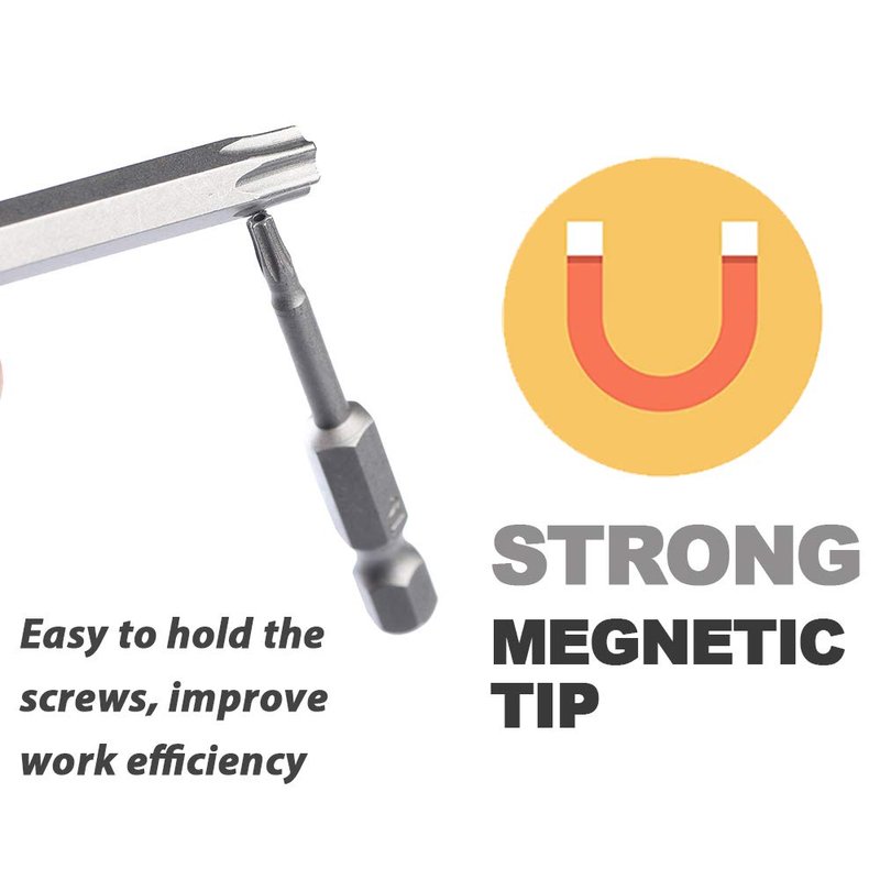 All the bits have strong magetic tips, will hold the screws and bolts in place.