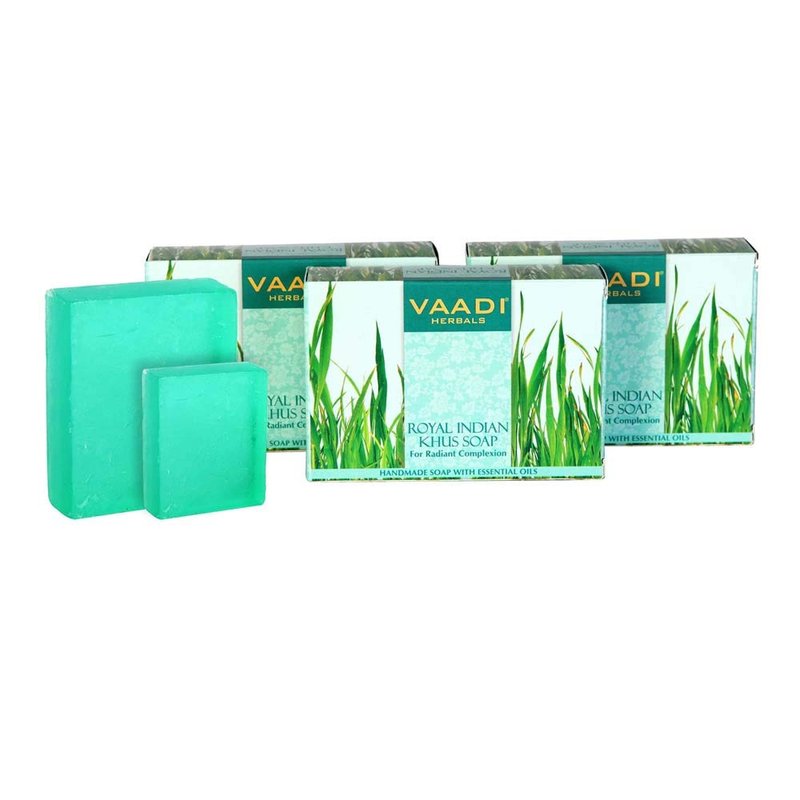 Vetiver Soap (Royal Indian Khus Bar Soap) - Handmade Herbal Soap with 100% Pure Essential Oils - ALL Natural - Each 2.65 Ounces - Pack of 3 (8 Ounces) - Vaadi Herbals