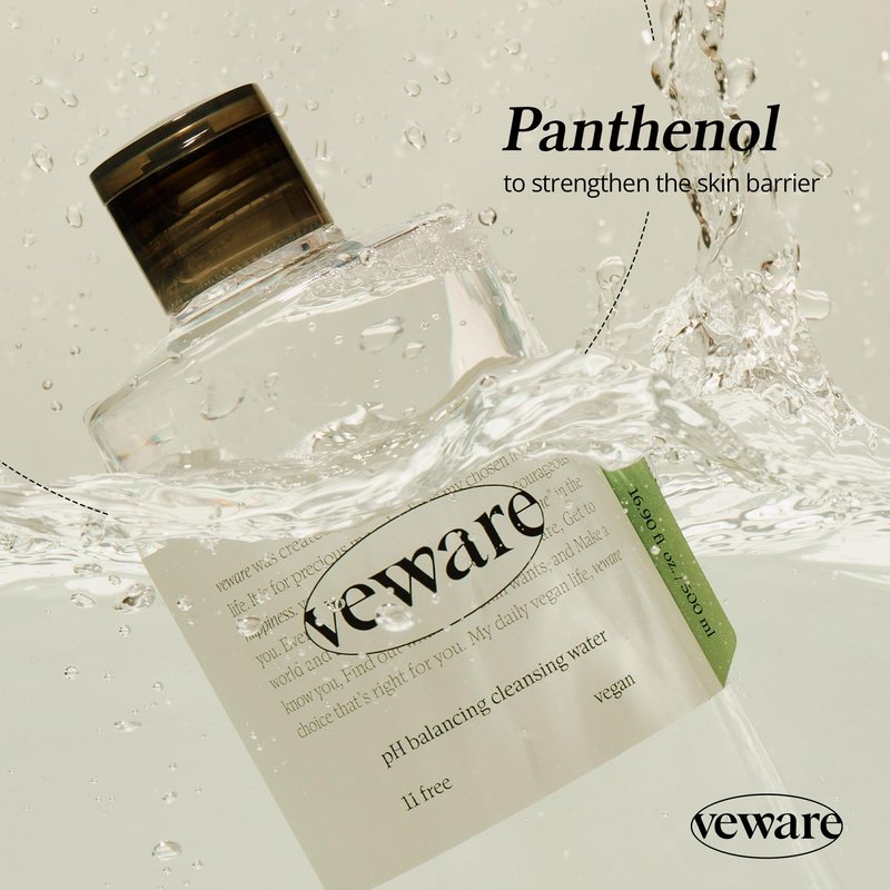 Veware Vegan pH Balancing Cleansing Water Micellar water 100% Vegan Formula Make up remover, For Soothing and Moisturizing Cleansing, Unscented, Hypoallergenic 500ml 16.90 fl.oz.