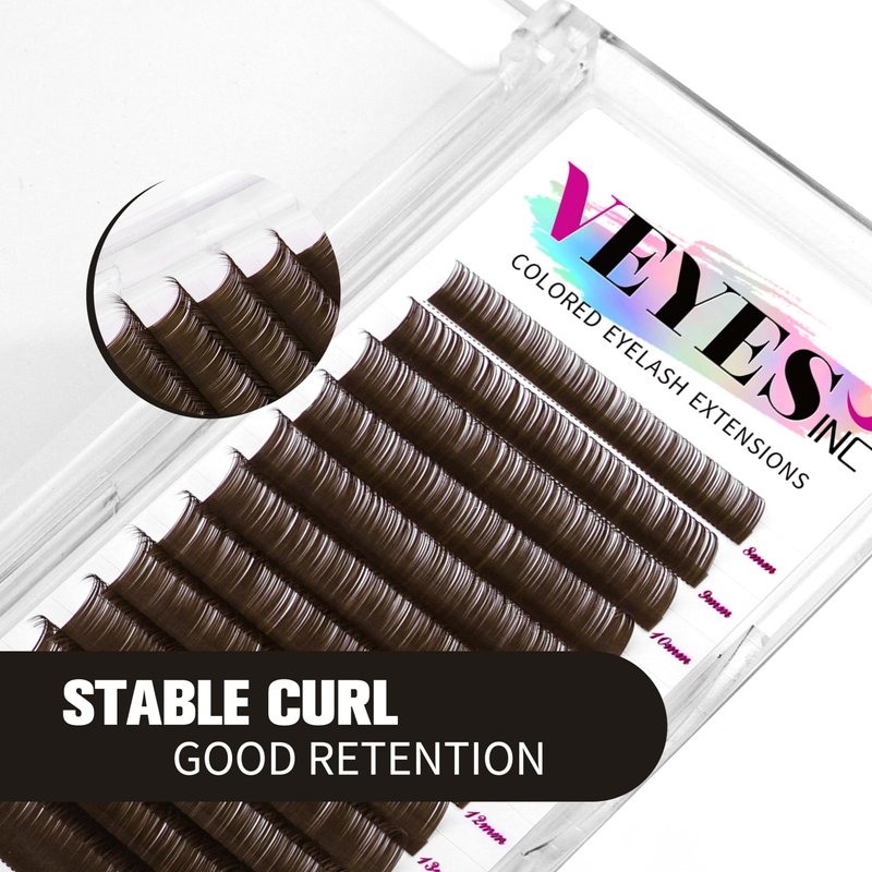 VEYES INC Colored Lash Extensions 03 05 07 15 C/D Curl 8-16mm Mixed Length Tray, Premium Individual Silk Eyelashes, Professional Supplies for Lash Techs (Dark Latte Brown 0.03 D 8-16mm)