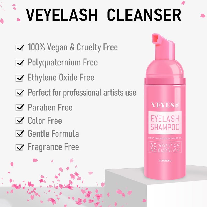 VEYES INC Lash Shampoo for Lash Extensions. Eyelash Wash for Extensions & Natural Lashes. Eyelash Extension Cleanser + Cleaning Brush + Eyelash Brush,Oil & Sulfate Free,60ml. Lash Supplies for Salon & Home Care