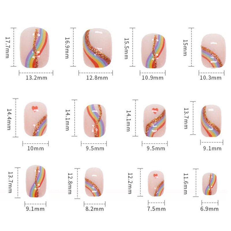 - 【Multiple Sizes】You'll get 24 false nails in 12 sizes. 1 mini nail file, 1 small wooden stick, 1 piece of nail glue sticker and 1 piece cleaning paper. Glue on nails are perfect for most people's nails.