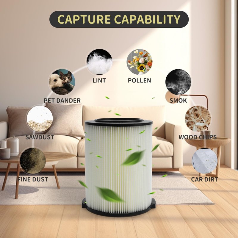 - 【Features】Single One layer pleated paper filter construction, Washable and reusable.Captures sawdust, fine dust, pet dander, lint, pollen, smok, wood chips and car dirt without clogging. The filter media is rated 99.97% efficient for fine particles such as allergens and pollens down to as small as 0.3 microns.