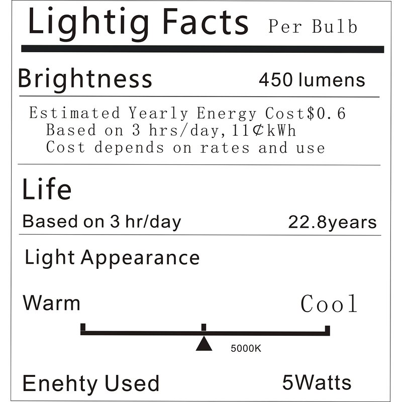 These are some of the features of the Refrigerator Light Bulb: Refrigerator Light LED Bulb performance with classic nostalgic look: The 5W filament Fridge LED bulb is the perfect replacement for traditional 40W incandescent light bulb. Not only will it provide you a better lighting experience, but also use 90% less power than the incandescent. It matches existing Edison Style bulb in appearance, brightness and color. This vintage style LED filament bulb is elegant and aesthetically pleasing; Used in countlesshome appliances, this light works well in both kitchens and bathrooms. It is especially suited for fridges, freezers, and bedside lamps, thanks to its small size, this freezer ceiling home lighting Lamp can fit inside most styles of decorative lighting fixtures, giving you a romantic and cozy atmosphere. Specifications Wattage: 5W Equivalent wattage: 40W Luminous flux: 550lm Color temp: 5000K daylight white Beam angle: 360 degree5t CRI>80 Base: E26 Working temp: -4° F - 113° F Lifespan: 25,000 hours High quality filament LED 25,000 hours long lifespan Our mission In Vgoglfy, our goal is to provide quality energy-saving lighting products for our customers with affordable price. With the expertise in the LED technology, our product not only superior in performance but also make your lighting experience more enjoyable and comfortable anytime, anywhere. Tip: 1,Turn off the power before you install the bulb 2,Please don't use them with dimmer switch, as the dimmer may cause the LED lights flicker, noise, or even damage.