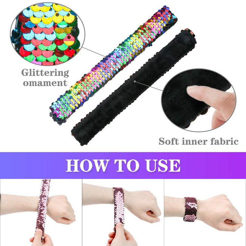 - ❤MULTI-FUNCTIONS:mermaid slap bracelets can be used as birthday party supplies,goody bag fillers,class prizes,novelty toys,festival gifts,stylish sequin wristband and hairband.