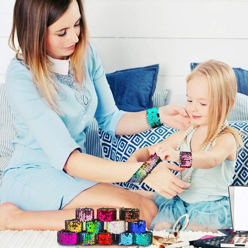 - ❤Pretty Charming Colors Bracelets:package includes 24pcs 8.7" x 1.2" squin slaps,rainbow,gold,pink,purple,silver,etc,perfect for younger children,teens and adults,you can share with your friends and enjoy joyful family time.