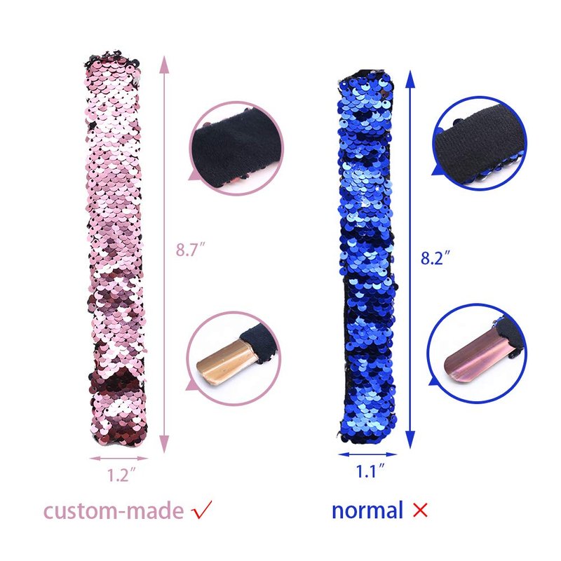 - ❤UPGRADED Material: different from common bracelet, our slap bracelet is made of thickened metal,customized super soft velvet and high quality reversible sequins,which not shed and fall off easily,skin-friendly and 100% safety certification for children.