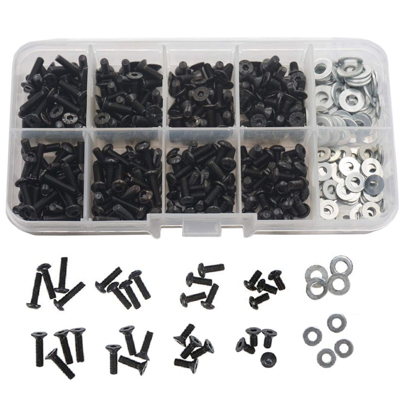 Vgoohobby 340PCS Universal M3 Screw Box Repair Accessories M3 Flat Round Head Screws M3 & M4 Flat Washer Compatible with Redcat HPI HSP Traxxas Tamiya SCX10 RC4WD 1/10 RC Car Truck